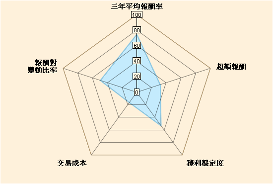 以崔納指標(Treynor Index)作為計算基礎,為代表投資人每承擔一個單位的市值風險(貝他值)所得的超額報酬。