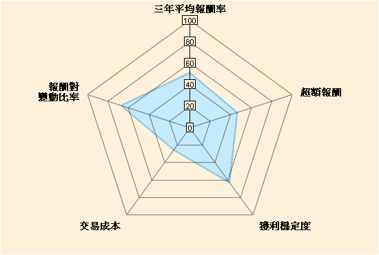 以崔納指標(Treynor Index)作為計算基礎,為代表投資人每承擔一個單位的市值風險(貝他值)所得的超額報酬。