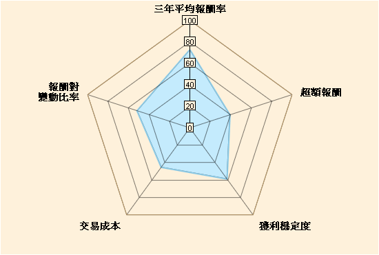 以崔納指標(Treynor Index)作為計算基礎,為代表投資人每承擔一個單位的市值風險(貝他值)所得的超額報酬。